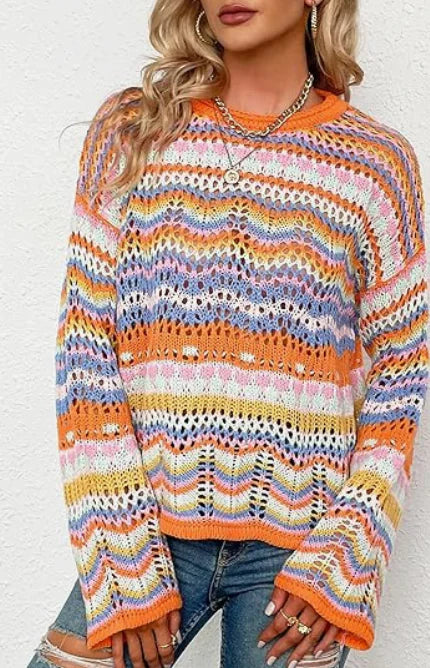 تألقي بمظهرك مع الكارديجان المحبوك متعدد الألوان من السبعينيات!