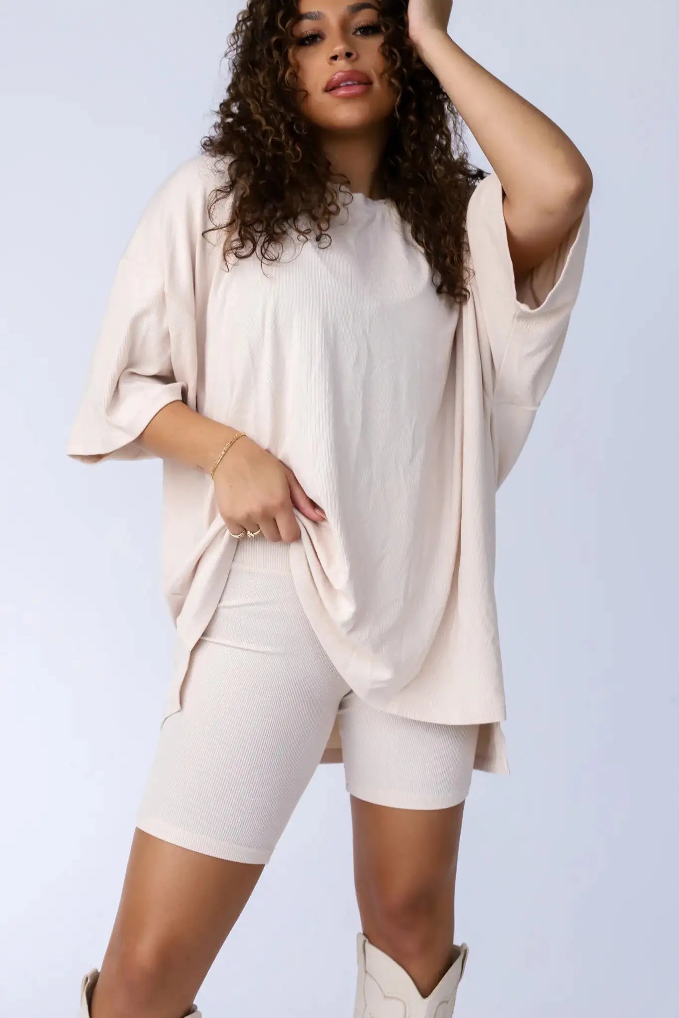 صُنعت مجموعتنا All Weekend Long من مواد عالية الجودة، وتوفر نسيجًا ناعمًا وجيد التهوية يعانق جسمك بلطف، مما يوفر ملاءمة جذابة وحركة غير مقيدة. سواء كنت تسترخي في المنزل أو تقوم بمهمات أو تقابل أصدقاء لتناول الغداء، فإن هذه المجموعة ستجعلك مرتاحًا وأنيقًا من شروق الشمس إلى غروبها.
