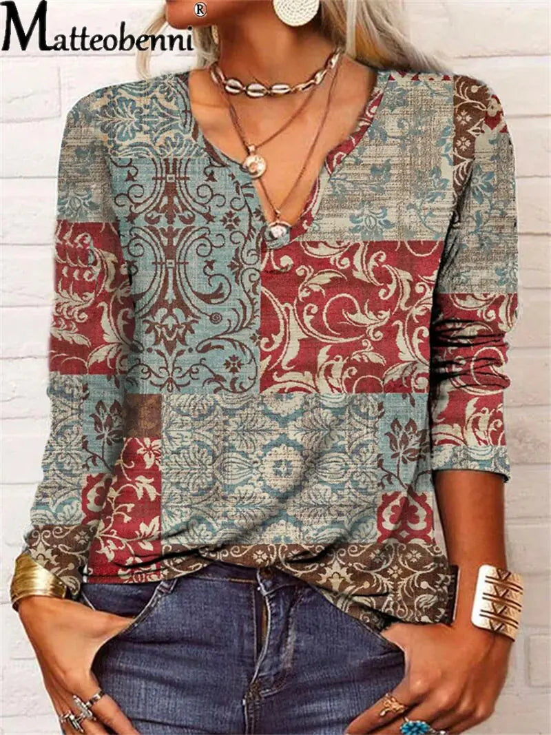 استمتعي بلمسة الأزهار المميزة لهذا الموسم مع تي شيرت نسائي طويل الأكمام بفتحة رقبة على شكل حرف V لفصل الخريف والشتاء. إنها الطريقة المثالية لإضافة لمسة من الدفء والأناقة إلى خزانة ملابسك. احصلي على تي شيرت اليوم واتركي أزيائك تزدهر! #FloralFashion #CozyChic"