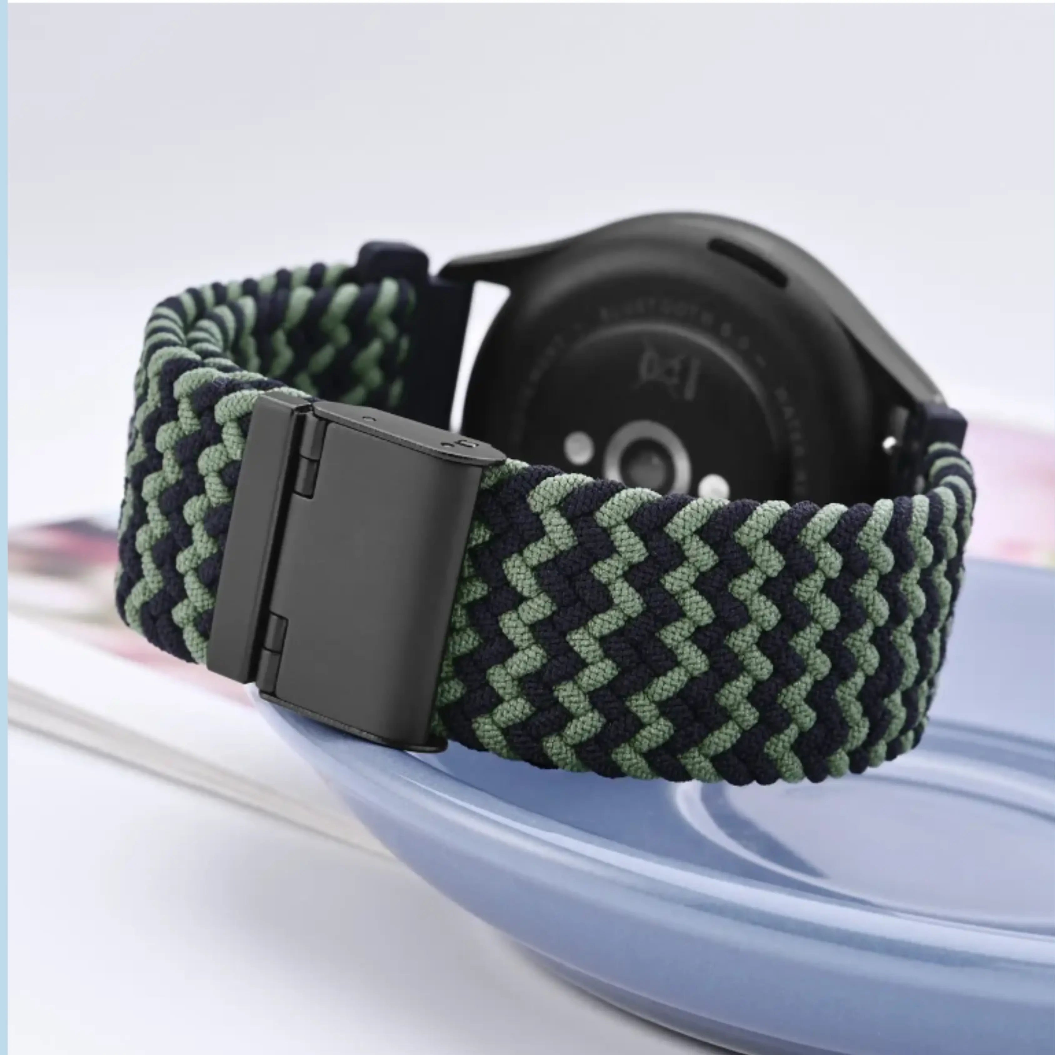 قم بتطوير لعبة ساعتك مع حزام ساعتنا المضفر باللون الأسود والأخضر الأنيق ومتعدد الاستخدامات!