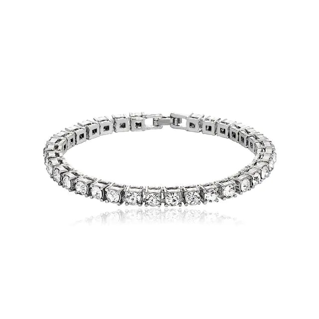 استمتعي بالأناقة المبهرة مع سلسلة سوارنا المرصعة بأحجار الراين الكريستالية اللامعة. مثالية للمناسبات الخاصة، فهي تضفي بريقًا فاخرًا وجذابًا على معصمك.
