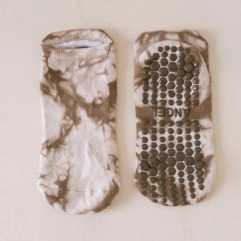 عزز استقرارك وتوازنك مع جوارب اليوجا المصبوغة بالربط. تضمن لك القبضة غير القابلة للانزلاق موطئ قدم آمنًا حتى أثناء أكثر الوضعيات تحديًا، مما يساعدك على الحفاظ على المحاذاة الصحيحة والتركيز على ممارستك.