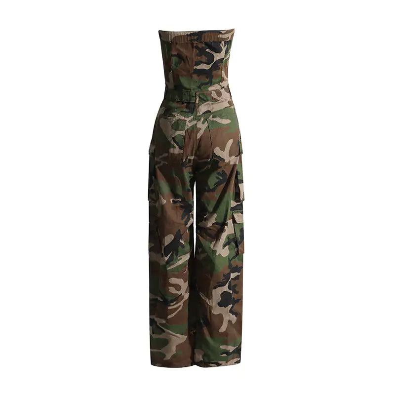 اجذب الانتباه ببدلة Brielle Camouflage Cargo Denim Jumpsuit