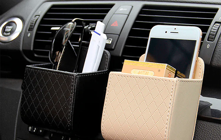 Organize your car with ease using our versatile Car Storage Bag, designed to keep your essentials tidy and accessible. Whether mounted on the air vent or dashboard, this organizer offers multiple compartments for storing glasses, phones, keys, and more. Made from durable leather, it adds a touch of elegance to your vehicle's interior while providing practical storage solutions. Ideal for daily commutes or road trips, this bag ensures you have everything you need at your fingertips, enhancing convenience and efficiency on the go.