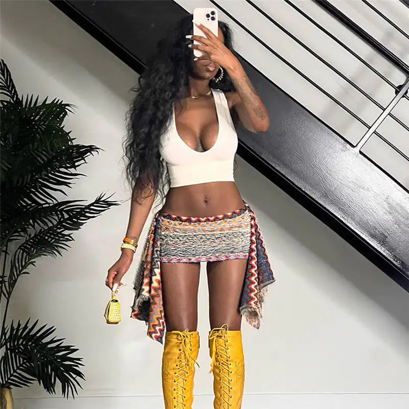 ارتقِ بأسلوبك الصيفي مع تنورة شيفرون القصيرة واتركي ذوقك في الموضة يتألق. فعندما تبدو بمظهر جيد، تشعرين بأنك لا يمكن إيقافك.