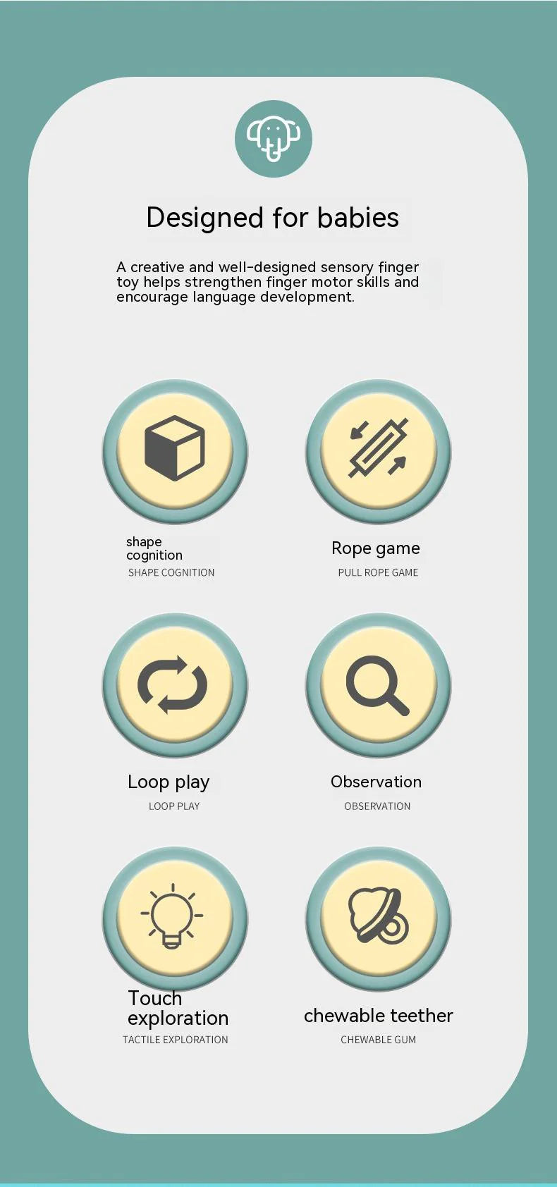 Designed for babies aged 0-3 years, this innovative toy combines early education with interactive play. Featuring an adorable elephant design and a unique touch-and-swing mechanism, it stimulates sensory development and hand-eye coordination. The lightweight finger UFO shape makes it easy for tiny hands to grasp and explore, while the vibrant colors and engaging movements capture your child’s attention. Ideal for early learning and endless entertainment, this toy is perfect for curious little minds.