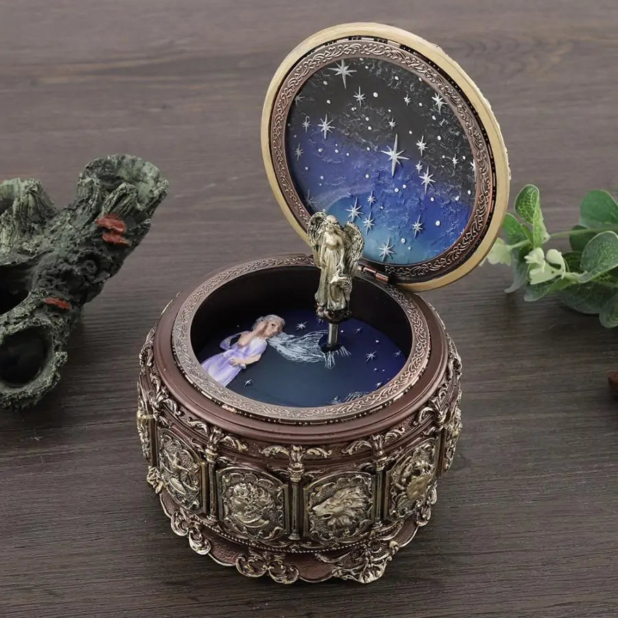 استمتع بالسحر مع صندوق الموسيقى Constellations الخاص بنا. يجمع هذا الإبداع الرائع بين الألحان الهادئة والأضواء LED المتلألئة، مما يخلق أجواء ساحرة تأسر الصغار والكبار على حد سواء.