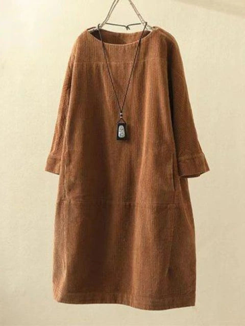 أضف لمسة من الأناقة إلى إطلالتك اليومية مع فستاننا الواسع من قماش مخملي. تجمع هذه القطعة متعددة الاستخدامات بين الراحة غير الرسمية واللمسة من الرقي، مما يجعلها قطعة أساسية في خزانة ملابسك.
