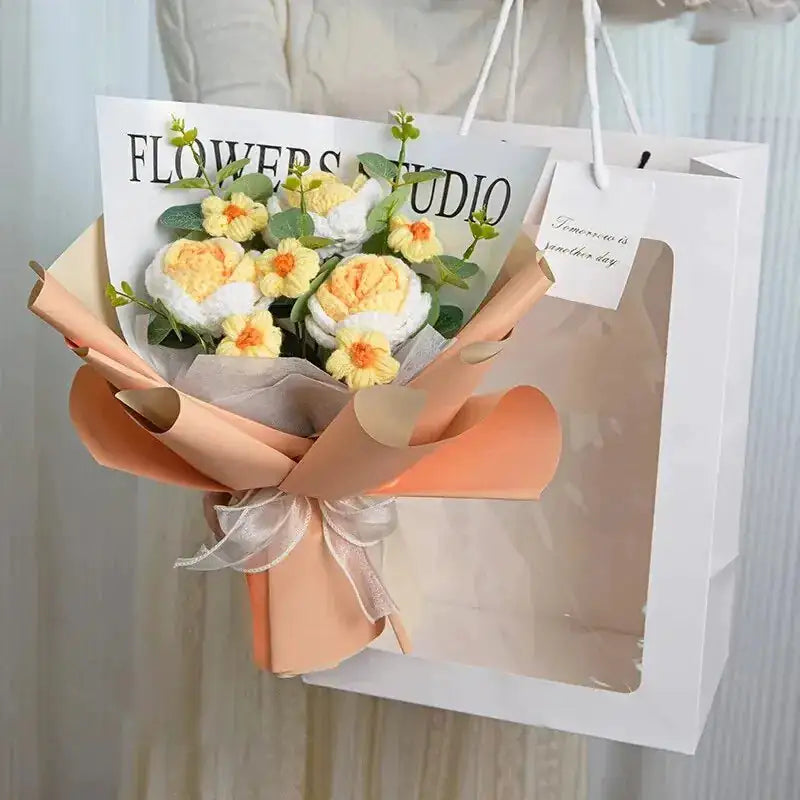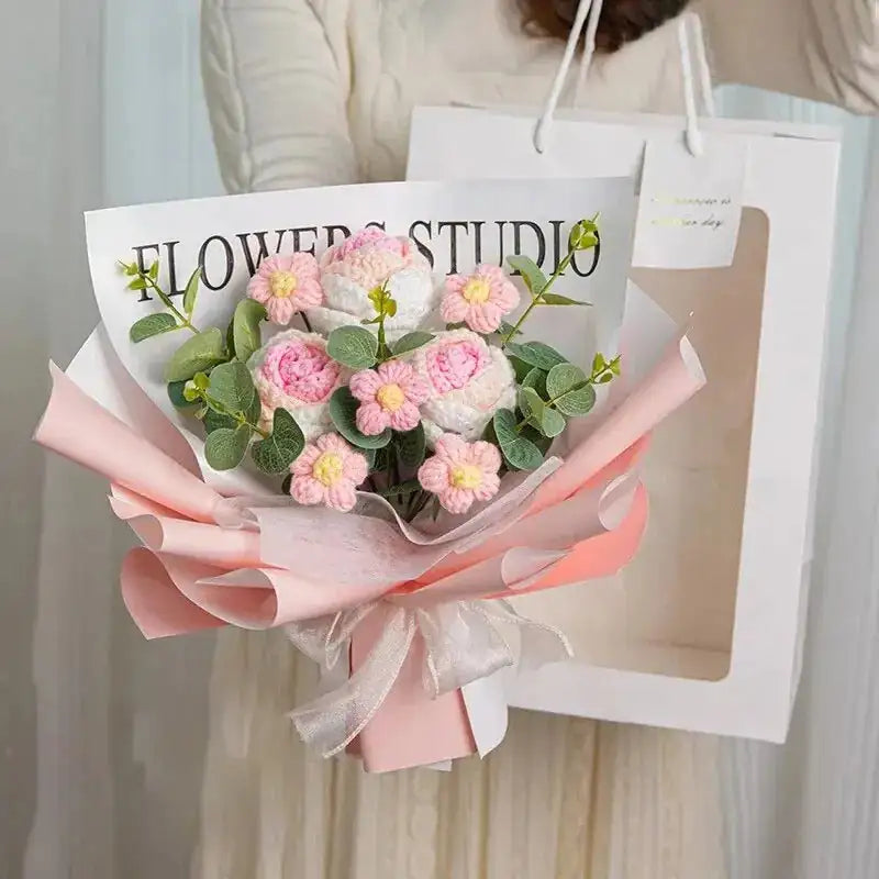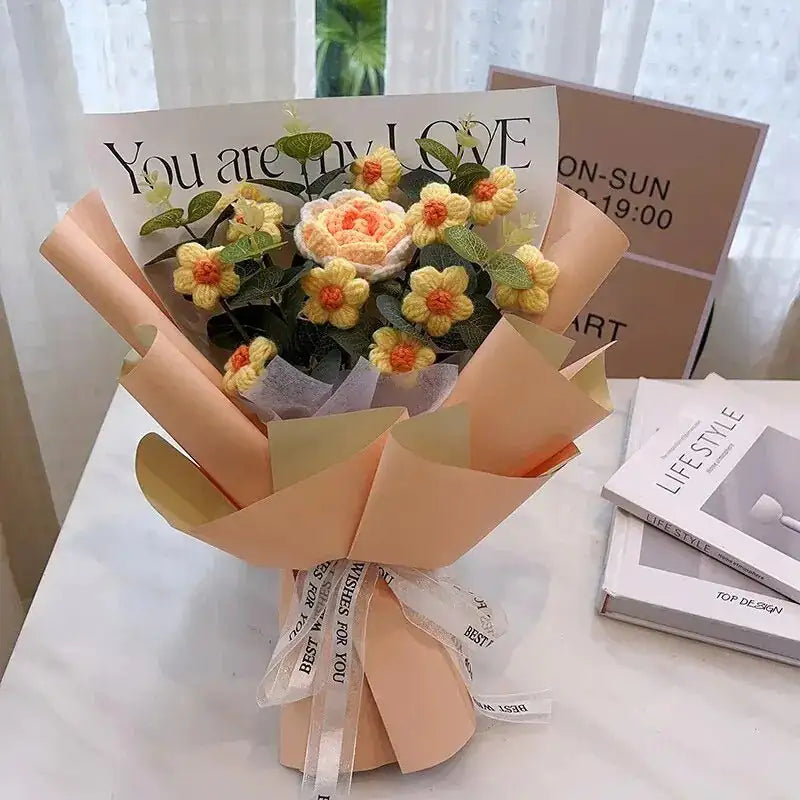 أضف لمسة من الأناقة الخالدة إلى منزلك مع باقة الزهور الكروشيه واستمتع بمتعة الجمال المصنوع يدويًا والذي يدوم مدى الحياة. كل باقة هي شهادة على براعة وحرفية الحرفيين الموهوبين لدينا، مما يجعلها إضافة مميزة حقًا لأي مساحة.