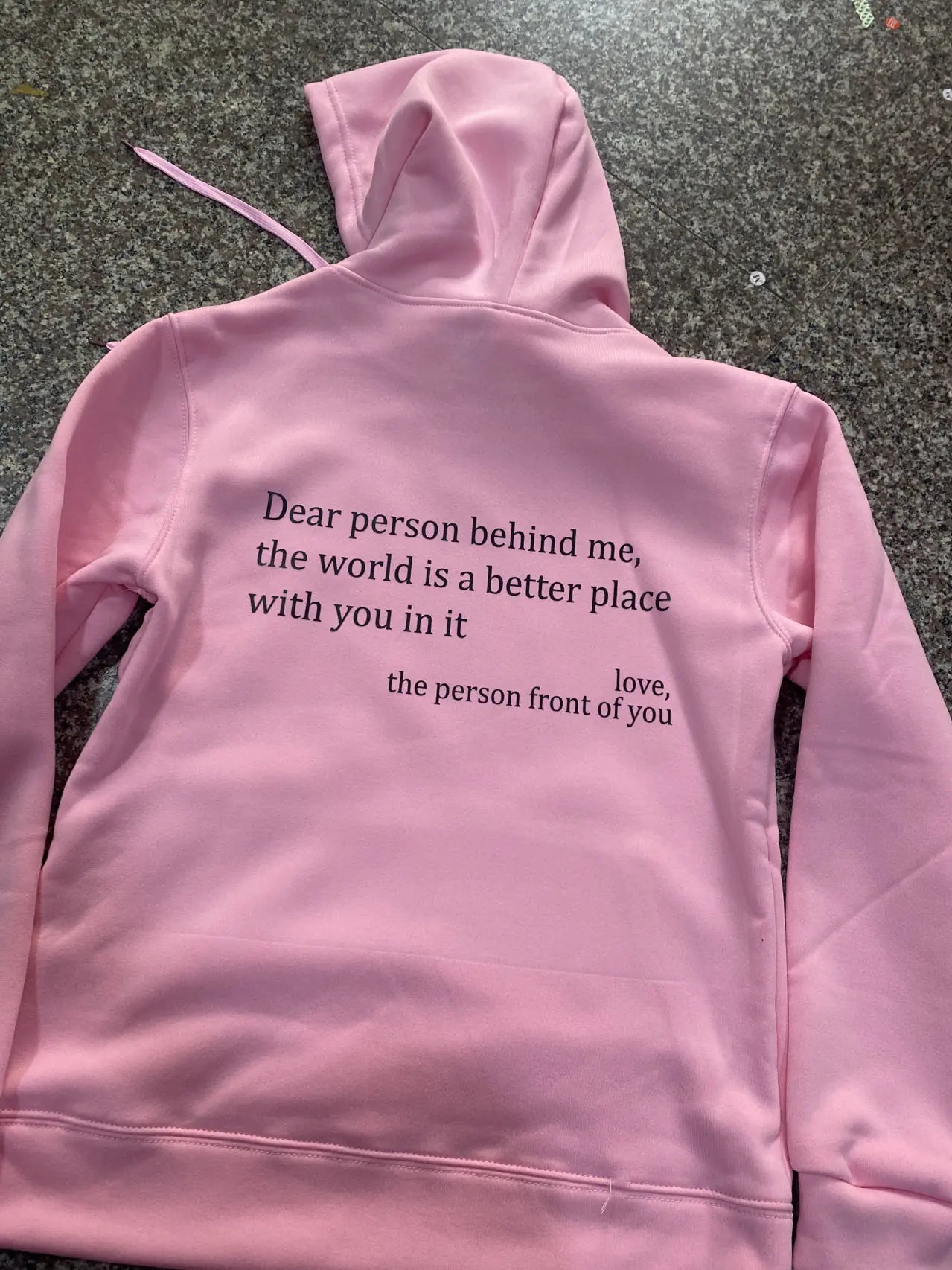 انضم إلى الحركة واجعل كل يوم مهمًا من خلال شراء هودي "Dear Person Behind Me" الخاص بك اليوم. استعد لشحن الكثير من المشاعر الإيجابية وإحداث تأثير دائم على العالم!