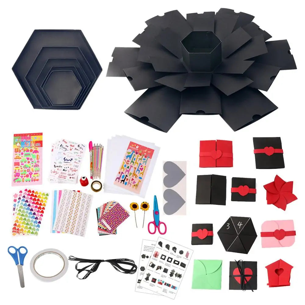 صُممت مجموعة DIY الخاصة بنا مع مراعاة البساطة، وتوفر كل ما تحتاجه لإنشاء صندوق انفجار مذهل. من الألواح القابلة للتخصيص إلى الزخارف الزخرفية، أطلق العنان لإبداعك وصمم هدية تتحدث من القلب.