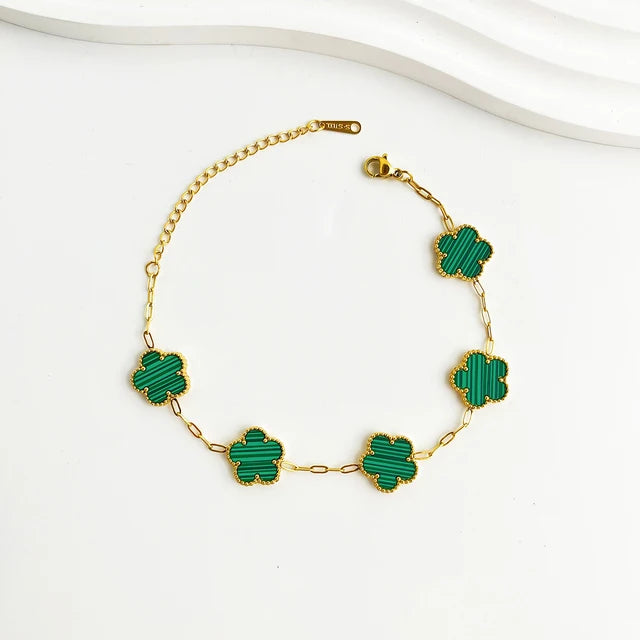 أظهري جمالك من خلال سوار Double Side Clover المصمم ليكمل شخصيتك الفريدة. إن جماله الأنيق وتصميمه الأنيق يعدان بتعزيز مظهرك دون عناء.