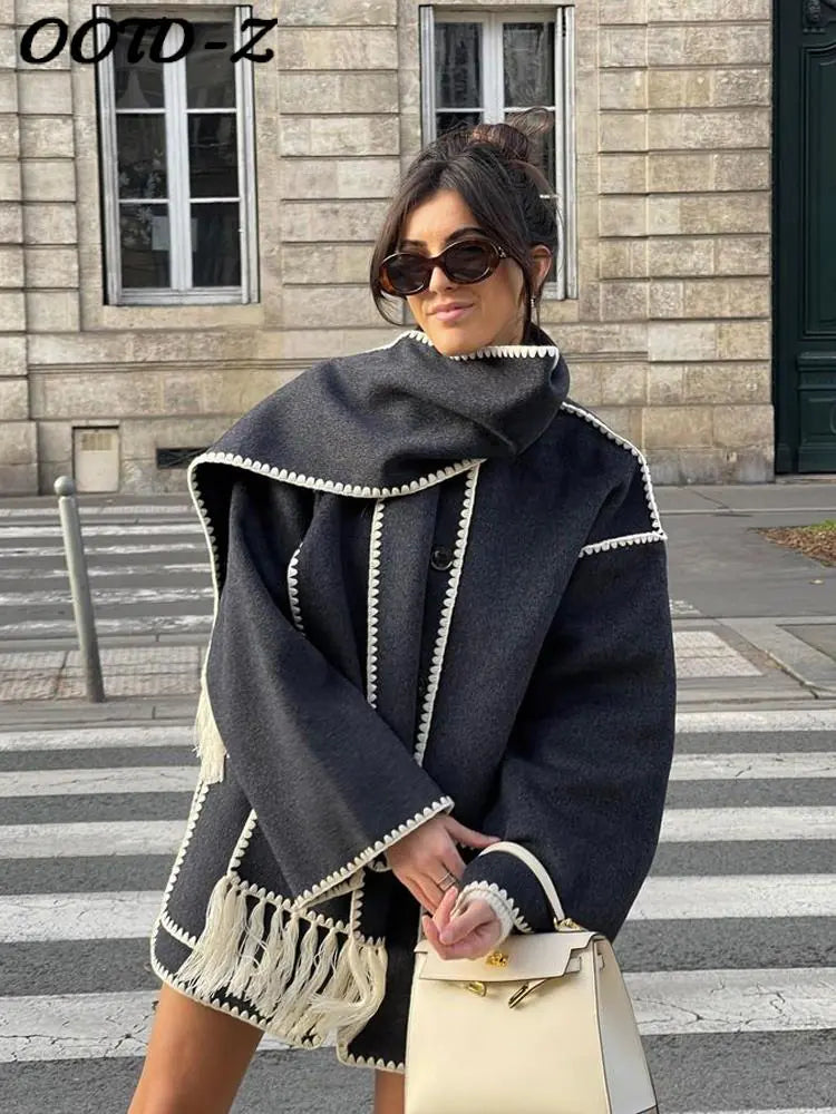أضيفي قطعة لا تتأثر بمرور الزمن إلى خزانة ملابسك مع معطفنا النسائي الأنيق مع وشاح. التصميم الكلاسيكي والألوان المحايدة تجعله ضروريًا لأي امرأة تحب الموضة. استثمري في معطف يوفر أناقة دائمة ويحافظ على أناقتك موسمًا بعد موسم.