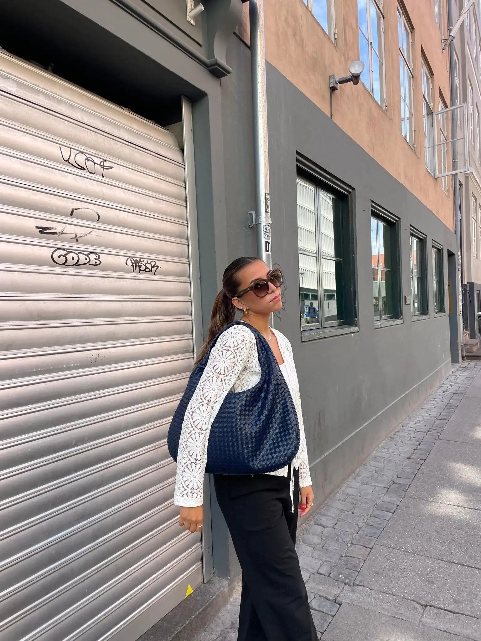 استمتعي بالتوازن المثالي بين الأناقة والعملية مع حقيبة جلدية تناسب أي مناسبة. يمنحك اللون الأزرق البحري المتطور لمسة فريدة من نوعها على التصميم الكلاسيكي، بينما تضمن المساحة الداخلية الفسيحة حصولك على كل ما تحتاجينه في متناول يدك.
