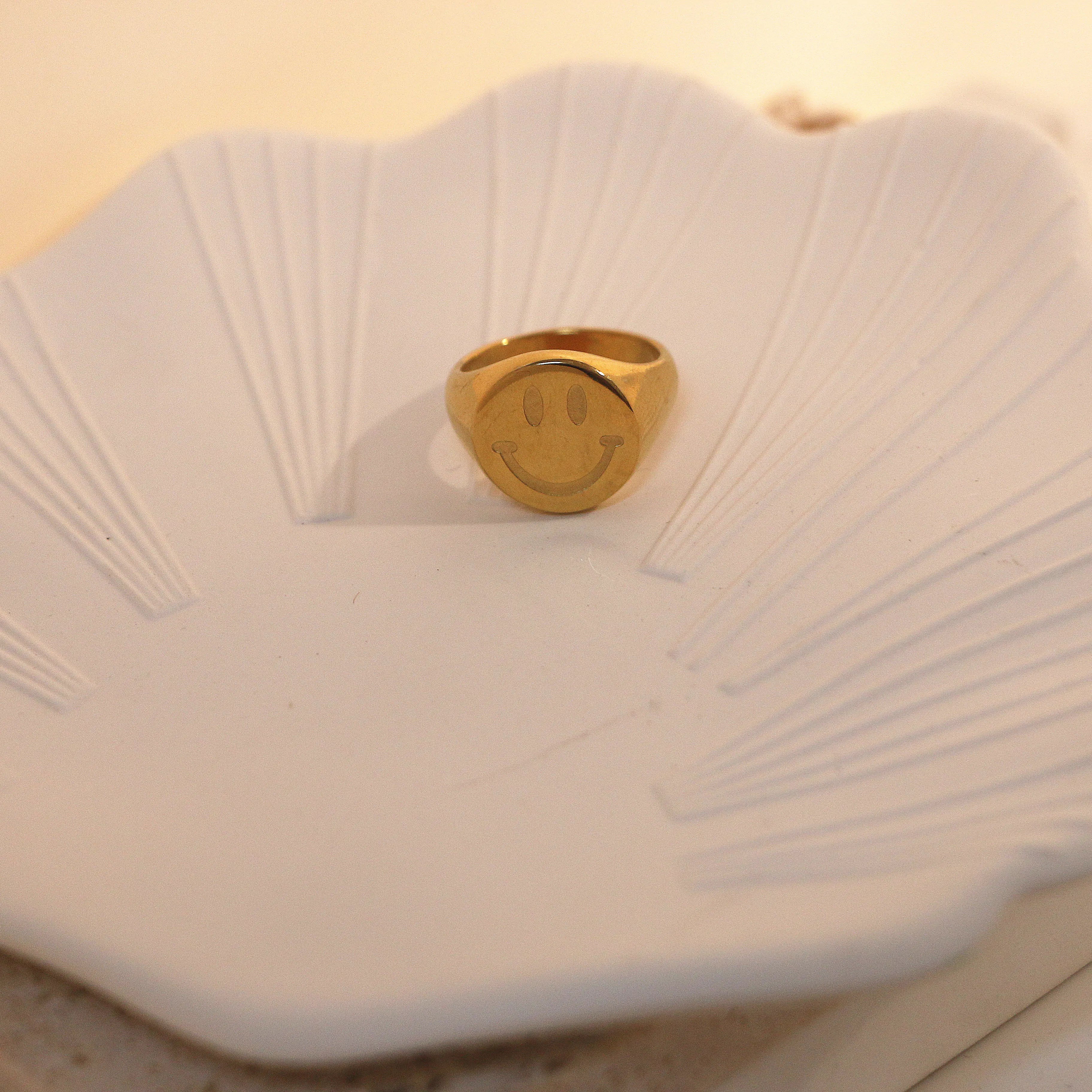 Introducing our Fashion Tarnish-Free Gold Plated Stainless Steel Smiley Rings - the ultimate fusion of style and positivity!
