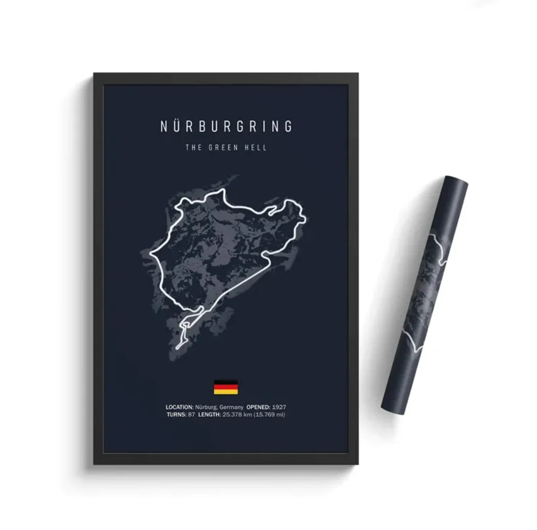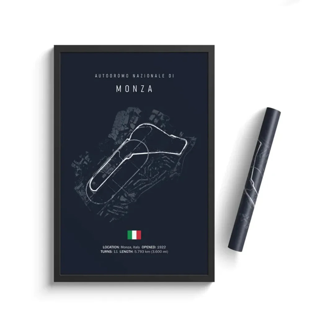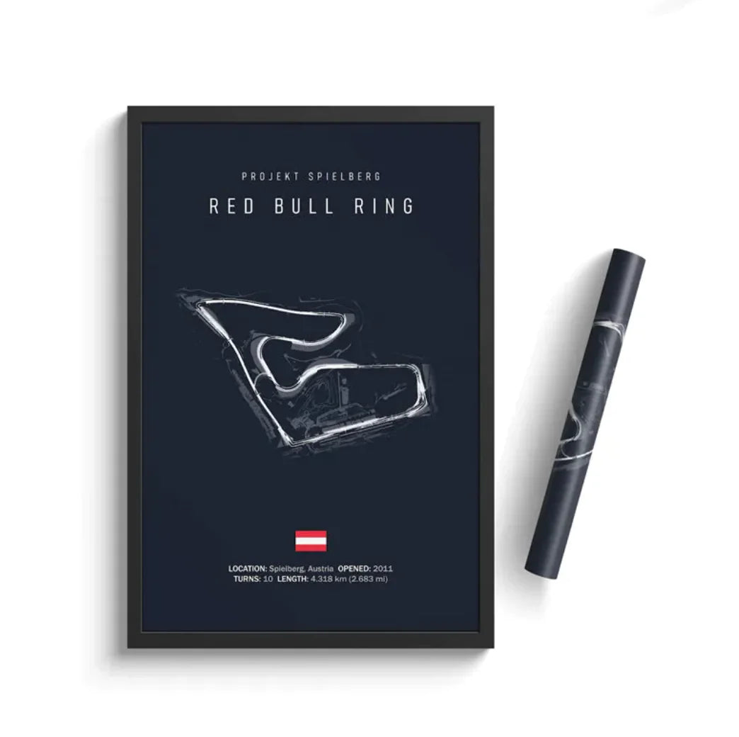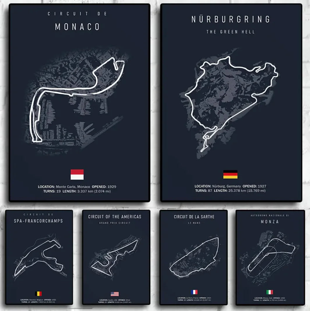 Dynamic wall canvas painting featuring a detailed Formula One racing track design, perfect for motorsport enthusiasts, adding a bold and energetic touch to any room or office decor.