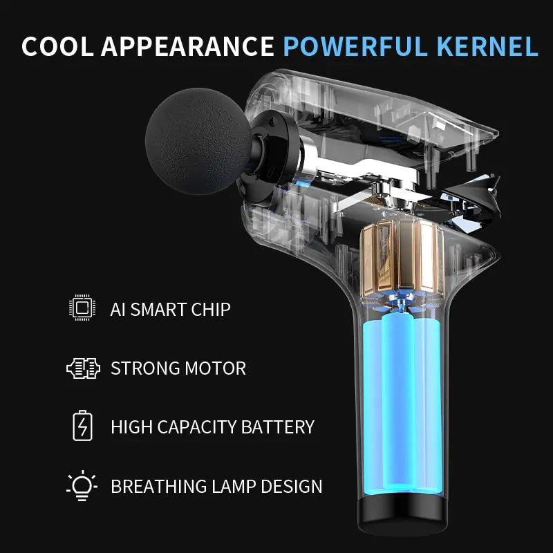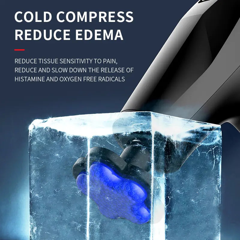 يتميز مسدس التدليك الخاص بنا بوظيفة الضغط البارد الفريدة، وهو مثالي لتقليل التورم وتسكين آلام المفاصل والعضلات المؤلمة. مع تصميمه الأنيق والانسيابي، المزود بضوء تنفس بارد، ينضح مسدس التدليك هذا بإحساس بالتكنولوجيا الحديثة والرقي.