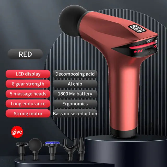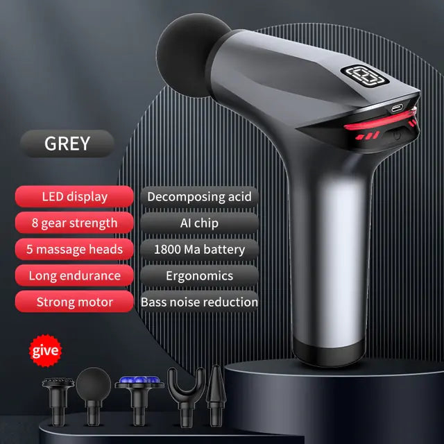 يتميز جهاز تدليك الأنسجة العميقة لدينا بخمسة رؤوس تدليك وثماني مستويات سرعة قابلة للتعديل، مما يوفر راحة مخصصة لكل مجموعة عضلية. بفضل تشغيله الهادئ للغاية وشاشة اللمس LCD عالية الدقة، يمكنك الاستمتاع بتجربة تدليك هادئة مع البقاء على اطلاع بمستويات السرعة وعمر البطارية.