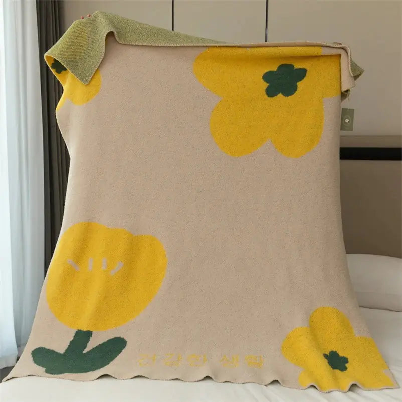 Wrap yourself in cozy elegance with our 'Korean Sunflower Velvet Knitted Blanket'—where warmth meets style in a burst of cheerful comfort!