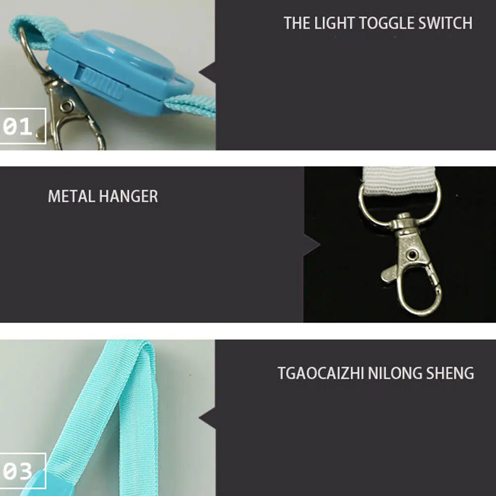 يتميز حبل التعليق LED الوامض بأضواء LED نابضة بالحياة تنبعث منها توهج ساطع وملون. مع أوضاع وميض متعددة للاختيار من بينها - مثل الضوء الثابت والوميض البطيء والوميض السريع - فإنه يضيف الإثارة والوضوح إلى أي مناسبة. تجعلك الأضواء النابضة ملحوظة بسهولة في الحشود والبيئات ذات الإضاءة الخافتة.
