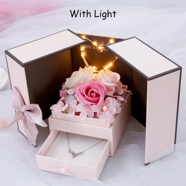 نقدم لك صندوق هدايا مجوهرات أحمر الشفاه وزهرة الورد LED - الطريقة المثالية للارتقاء بتجربة تقديم الهدايا في عيد الحب وحفلات الزفاف والذكرى السنوية والمزيد.
