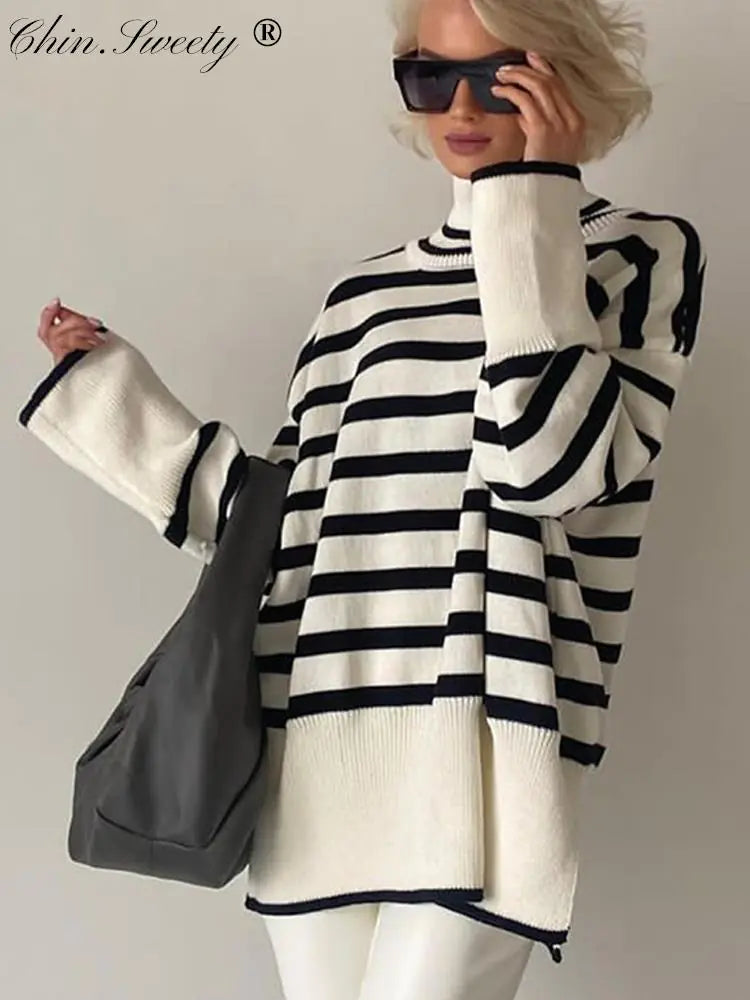 حافظي على أناقتك ودفئك بارتداء سترتنا المخططة ذات الياقة المدورة