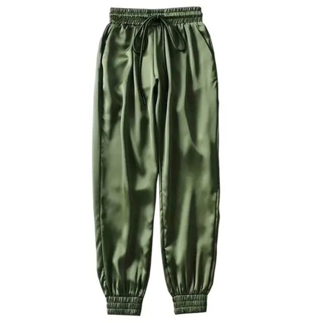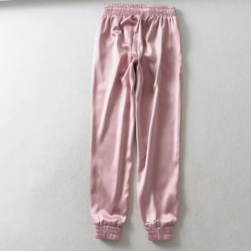 استمتع بأقصى درجات الراحة والأناقة مع بنطالنا الرياضي المصنوع من الساتان بلون سادة. مصمم بحزام خصر مطاطي ورباط قابل للتعديل، مما يوفر ملاءمة مثالية لأي نوع من أنواع الجسم. مثالي لأولئك الذين يريدون الشعور بالاسترخاء دون التنازل عن الأناقة.