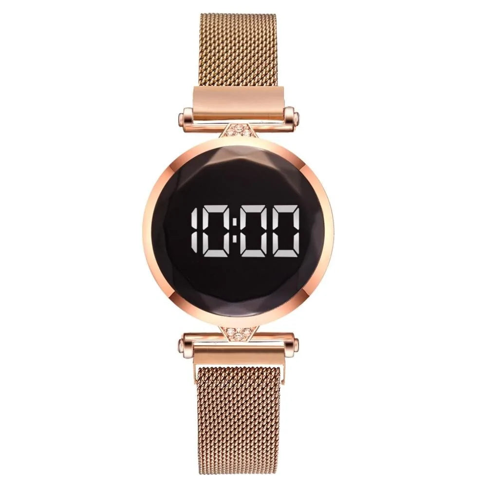 استمتع بالراحة مع ساعة اليد المغناطيسية. يضمن لك حزامها المغناطيسي المبتكر ملاءمة آمنة وسهلة، مما يسمح لك بارتداء الساعة وخلعها بسهولة.