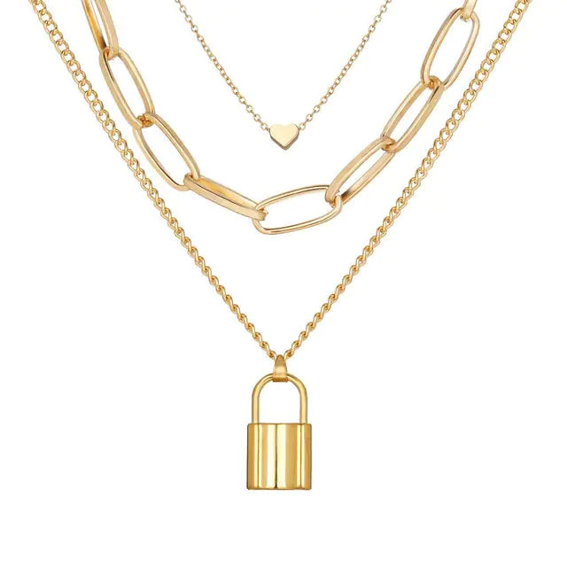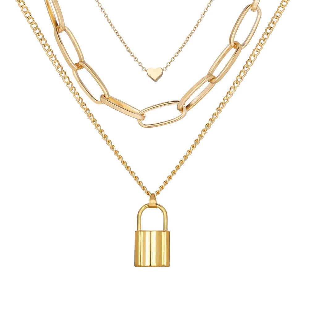 تميزي بقلادتنا ذات الطبقات المتعددة. تصميمها المتعدد الطبقات والقلادات المتنوعة تخلق مظهرًا جريئًا وعصريًا، مثالية للتعبير عن ذوقك الفريد في الأناقة.