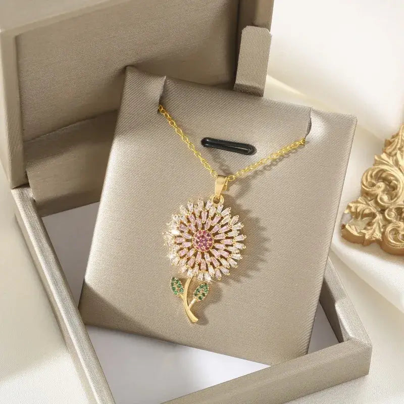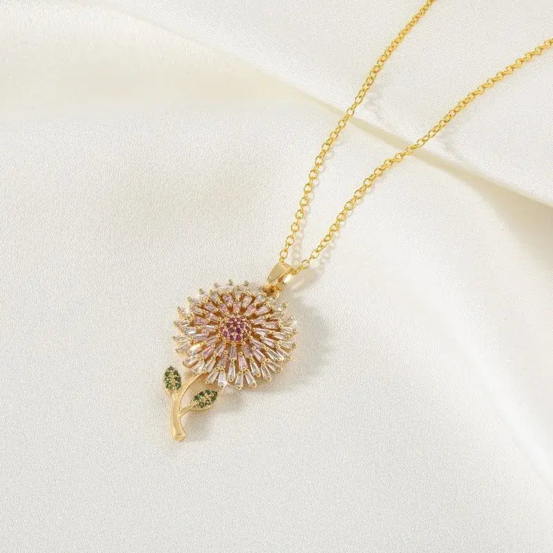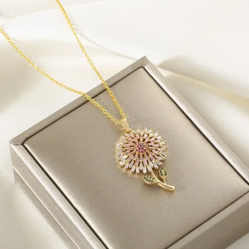 أضف البهجة إلى مظهرك مع قلادة Never Fade Pink Sunflower Pendant