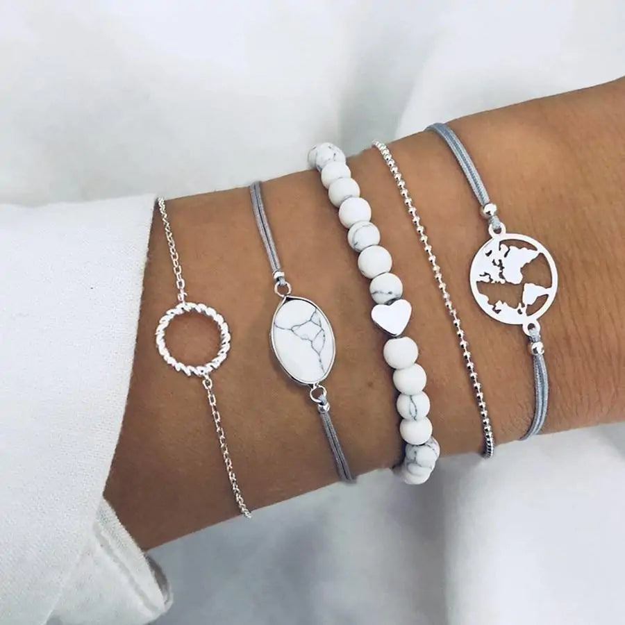 اصنعي مظهرك المميز مع مجموعة أساور الأحجار البيضاوية