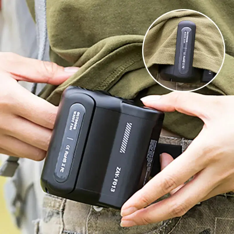 With its lightweight and ergonomic design, our Mini Waist Fan effortlessly clips onto your waist, providing hands-free cooling whenever and wherever you need it. Whether you're out for a jog, hiking your favorite trail, or simply relaxing outdoors, this fan is your trusty companion.
