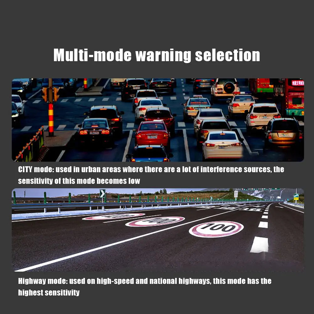 أوضاع الكشف المخصصة: اختر بين أوضاع الكشف في المدينة والطريق السريع بالضغط على زر، للتكيف مع محيطك للحصول على أداء مثالي.