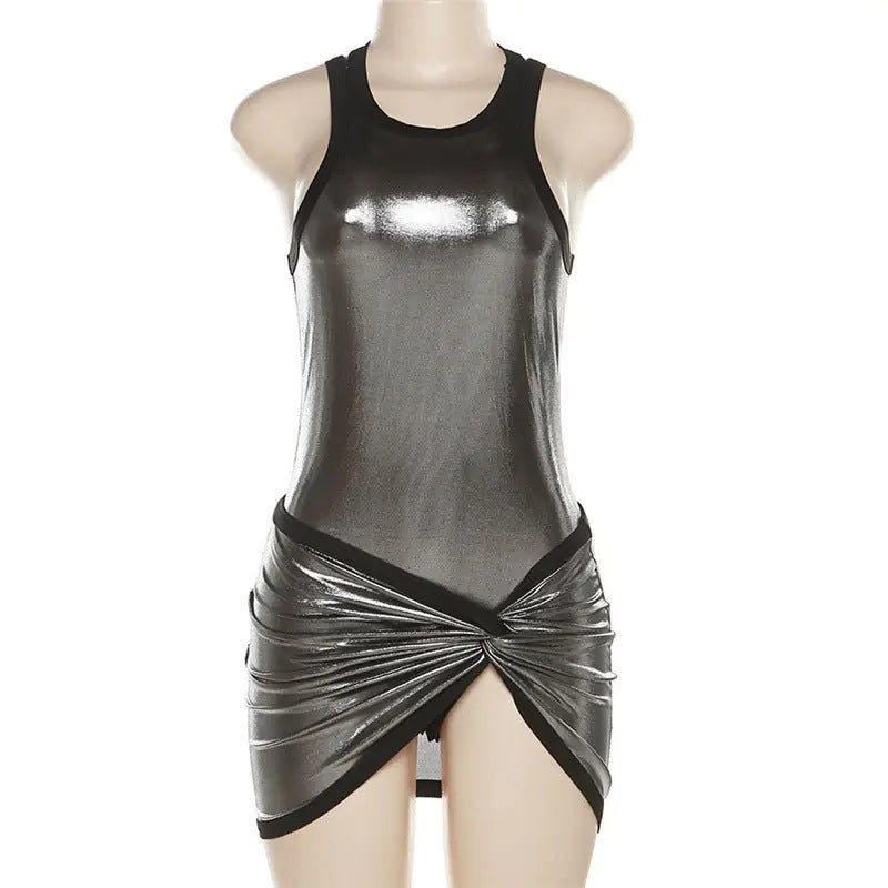 انطلقي إلى الأضواء مع طقم التنورة القصيرة الرائع "تذكرني" المعدني الملتوي الأمامي - ثنائي ديناميكي مصمم لجعلك لا تُنسى. ارتقِ بأسلوبك مع هذه المجموعة الجذابة التي تمزج بسلاسة بين الرقي والجاذبية.