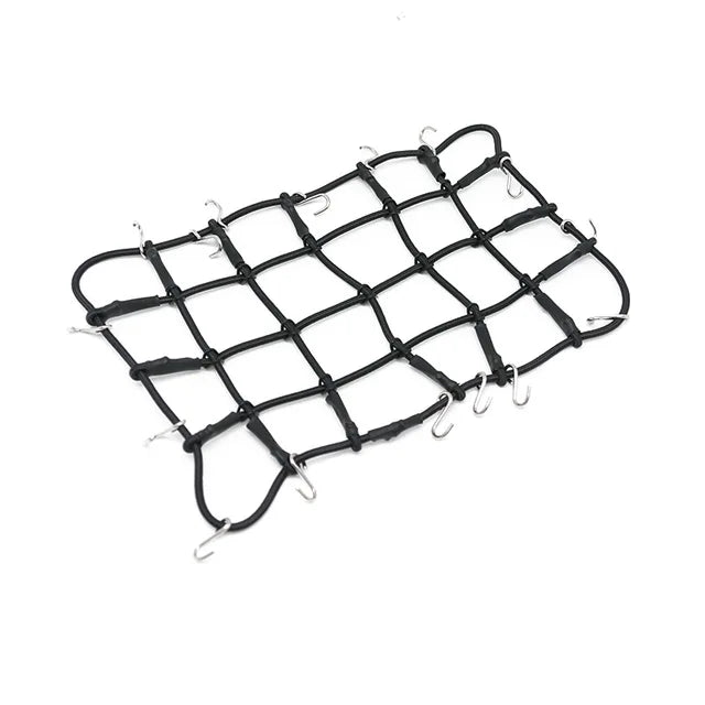 Crafted from durable materials, this luggage net is built to withstand the rigors of off-road terrain while keeping your cargo secure during your RC adventures. Whether you're traversing rocky trails, crawling over obstacles, or navigating through rough terrain, this roof rack luggage net ensures that your gear stays safely stowed.