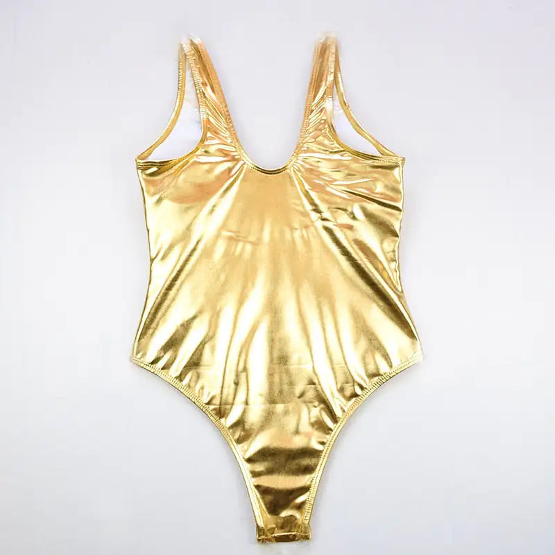 ارتدِ بدلة السباحة الجلدية الرائعة باللون الذهبي أو الفضي المعدني وارتقِ بمظهرك على الشاطئ على الفور. يلتقط القماش اللامع ضوء الشمس، مما يضمن تركيز جميع الأنظار عليك أثناء تجولك على طول الشاطئ.