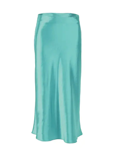 هذه التنورة مصنوعة من حرير الساتان الفاخر، وتوفر مزيجًا من الأناقة والراحة المثالية لأي مناسبة. تصميمه عالي الخصر يخلق صورة ظلية أنيقة، بينما يضيف الطول المتوسط الرقي إلى مظهرك.