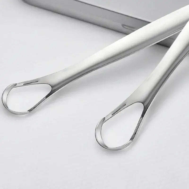 استمتع بنظافة الفم المثالية مع مكشطة اللسان المصنوعة من الفولاذ المقاوم للصدأ. مصممة لتنظيف اللسان بفعالية، فهي تزيل البكتيريا والحطام، وتحارب رائحة الفم الكريهة وتعزز انتعاش الفم وصحة الفم بشكل عام.