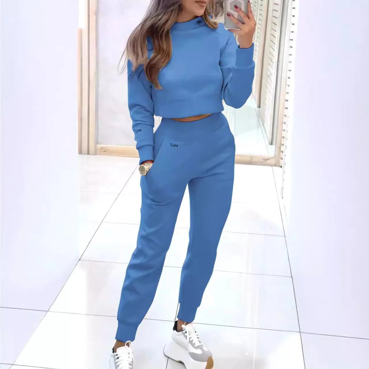 This stylish and functional sports suit is perfect for fitness enthusiasts and fashion-forward individuals alike. The set includes a long-sleeved pullover top with a stand collar for added style and a pair of slim-fitting trousers with convenient pockets. Crafted from breathable and moisture-wicking fabrics, this suit provides comfort and support during workouts and everyday activities.
