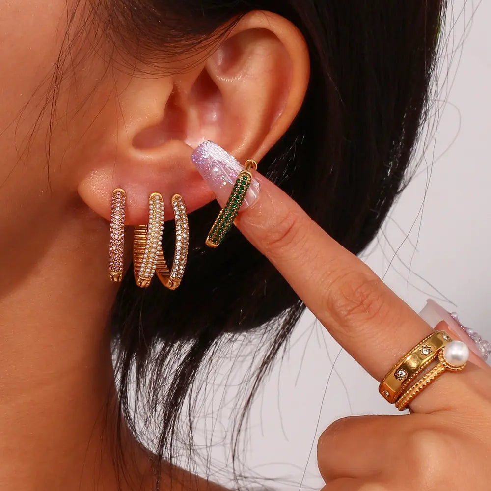جاذبية متعددة لأقراط اللؤلؤ الكريستالية على شكل حرف V