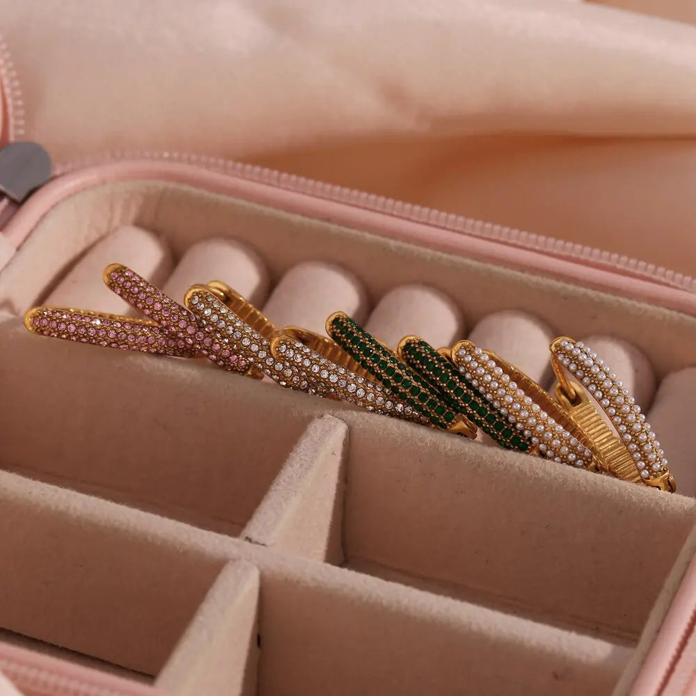 استثمري في جودة تدوم طويلاً مع أقراط اللؤلؤ الكريستالية على شكل حرف V. فهي مصنوعة من مواد عالية الجودة، وتوفر المتانة والجاذبية الخالدة، مما يجعلها إضافة عزيزة لمجموعة مجوهراتك.