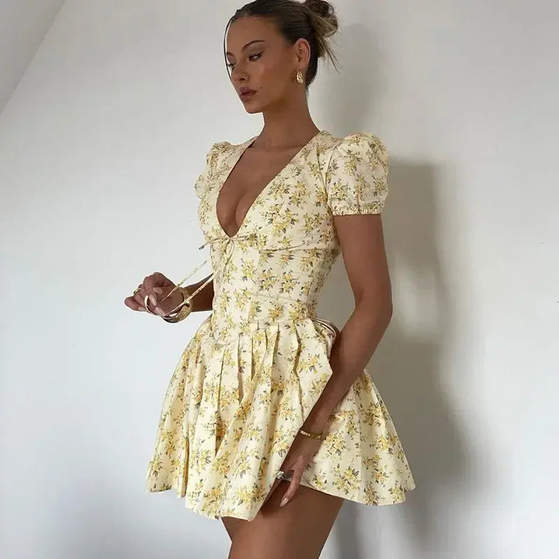 يجمع هذا الفستان بين الراحة والأناقة بكل سهولة. مصنوع من مواد عالية الجودة، يوفر الفستان القصير المطوي برباط على شكل حرف V وفتحة رقبة على شكل حرف V ملاءمة مثالية تتحرك معك. استمتعي بمظهر مريح وأنيق، مما يجعله الخيار الأمثل لأي نزهة.