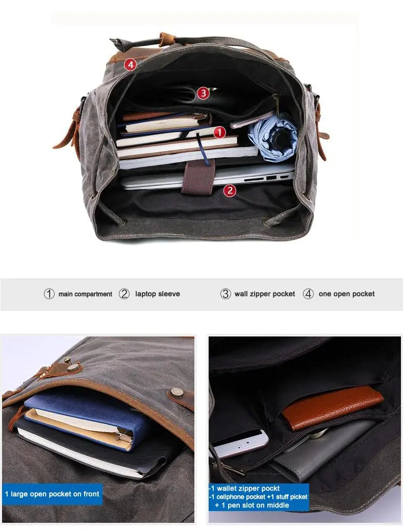 Make a statement wherever you go with this sleek and stylish waxed canvas backpack, blending classic design with modern functionality for a look that's both timeless and practical.