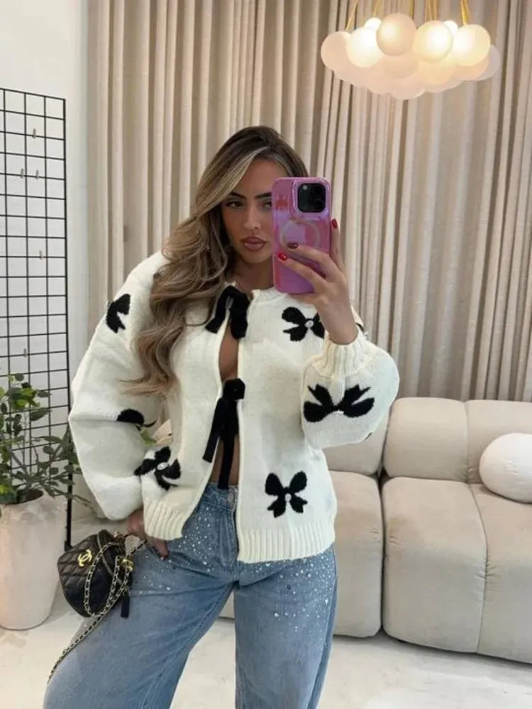 Indulge in the cozy charm of the Bow Knitted Cardigan and elevate your everyday look.