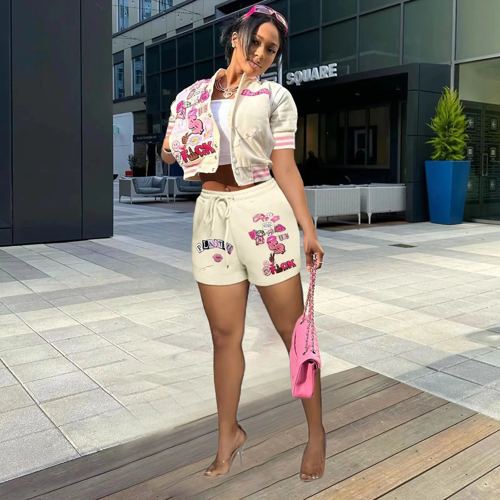 أطلقي العنان لإطلالتك هذا الصيف بارتداء سترة البيسبول النسائية المطبوعة بالأحرف المكونة من قطعتين والشورت الرياضي برباط. صُممت هذه المجموعة خصيصًا للمرأة العصرية التي تحب التميز، وتجمع بين الراحة والأناقة للحصول على مجموعة رائعة.