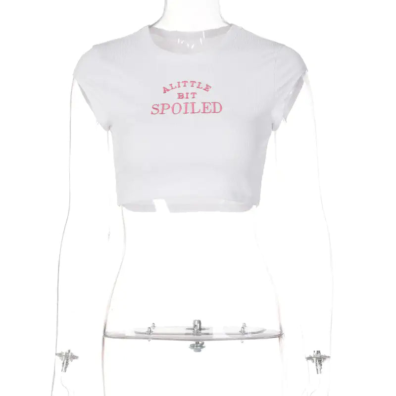 Show Off Your Sassy Side with "A Little Bit Spoiled" Ribbed Crop T-Shirt
