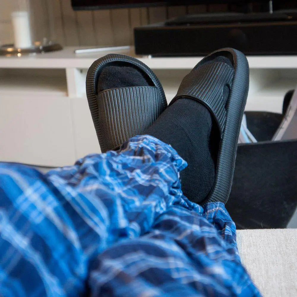 Fear no more about slipping and sliding! CalmFlops are engineered with anti-slip soles, offering you stability and peace of mind with every step.