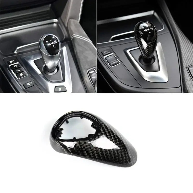 Elevate your car's interior with a sleek carbon fiber gear shift knob cover. Feel the difference every time you shift gears, as the premium material provides a comfortable and secure grip, enhancing both style and functionality.