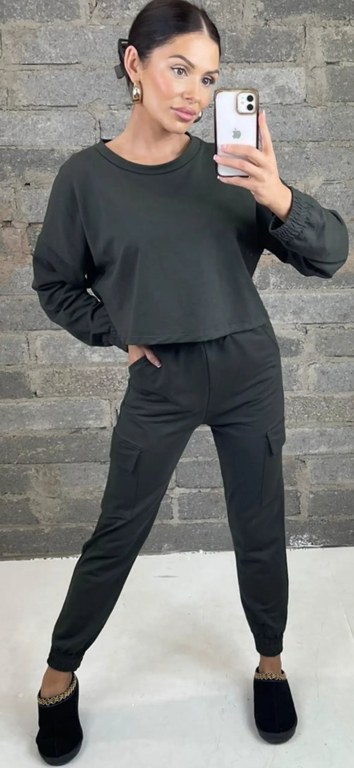 Embrace versatility with our Khaki Loungewear. Whether you're lounging at home or running errands, the cargo pocket adds a touch of practicality while the khaki color ensures you look effortlessly cool wherever you go.