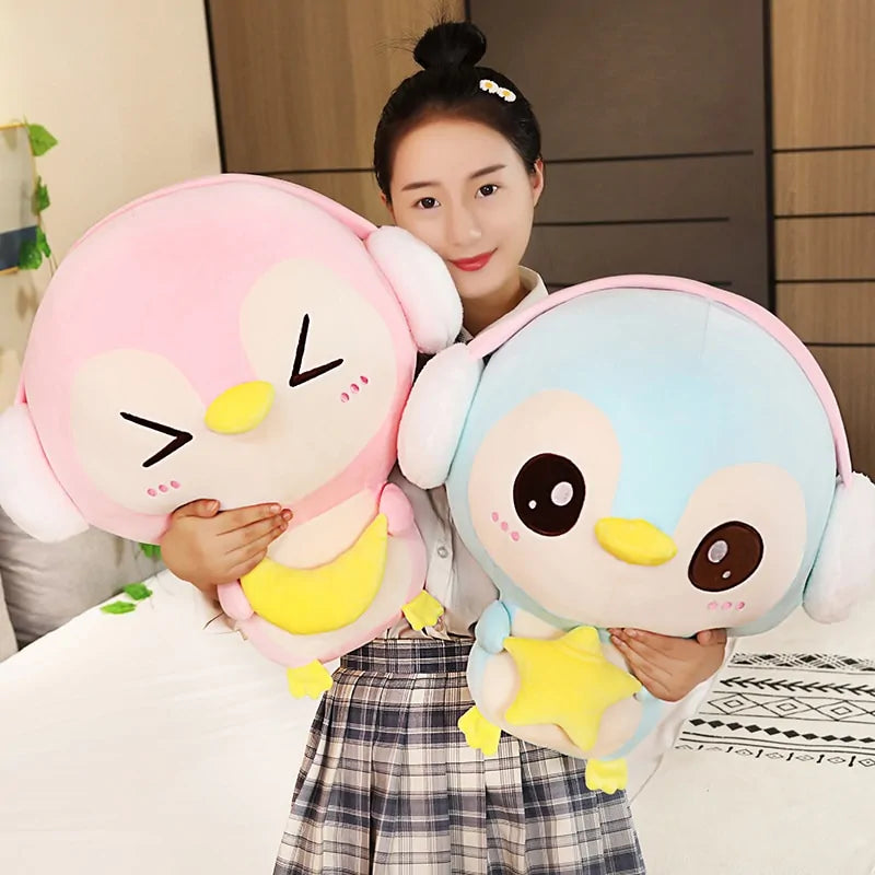 With its charming design and soft, plush texture, our penguin toy is not only cuddly but also serves as a delightful sleeping pillow. Its vibrant colors and playful headphones add an extra touch of fun, making it an ideal birthday gift for any young one.